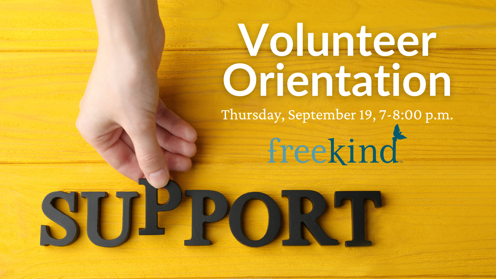 We periodically host virtual volunteer orientations as part of our volunteer on-boarding. We encourage you to fill out a volunteer application and to review the information about volunteering at freekindva.org/volunteer. RSVP for an upcoming virtual orientation here: RSVP.